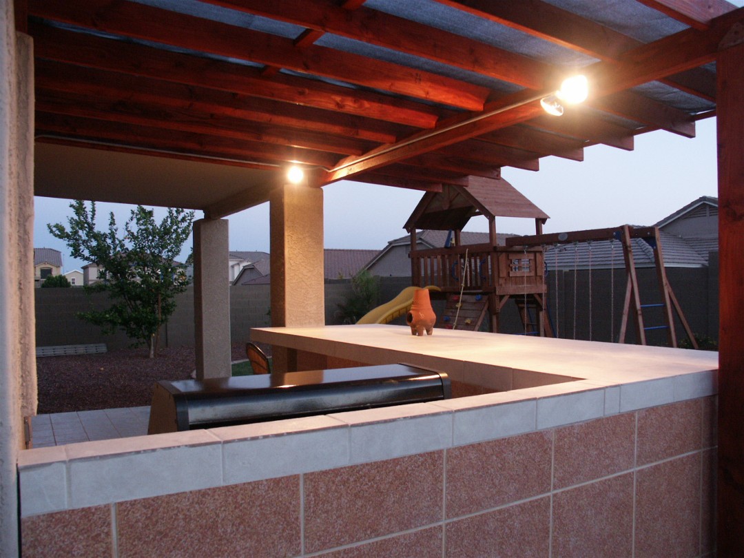 Early evening - Floodlights illuminate the island
